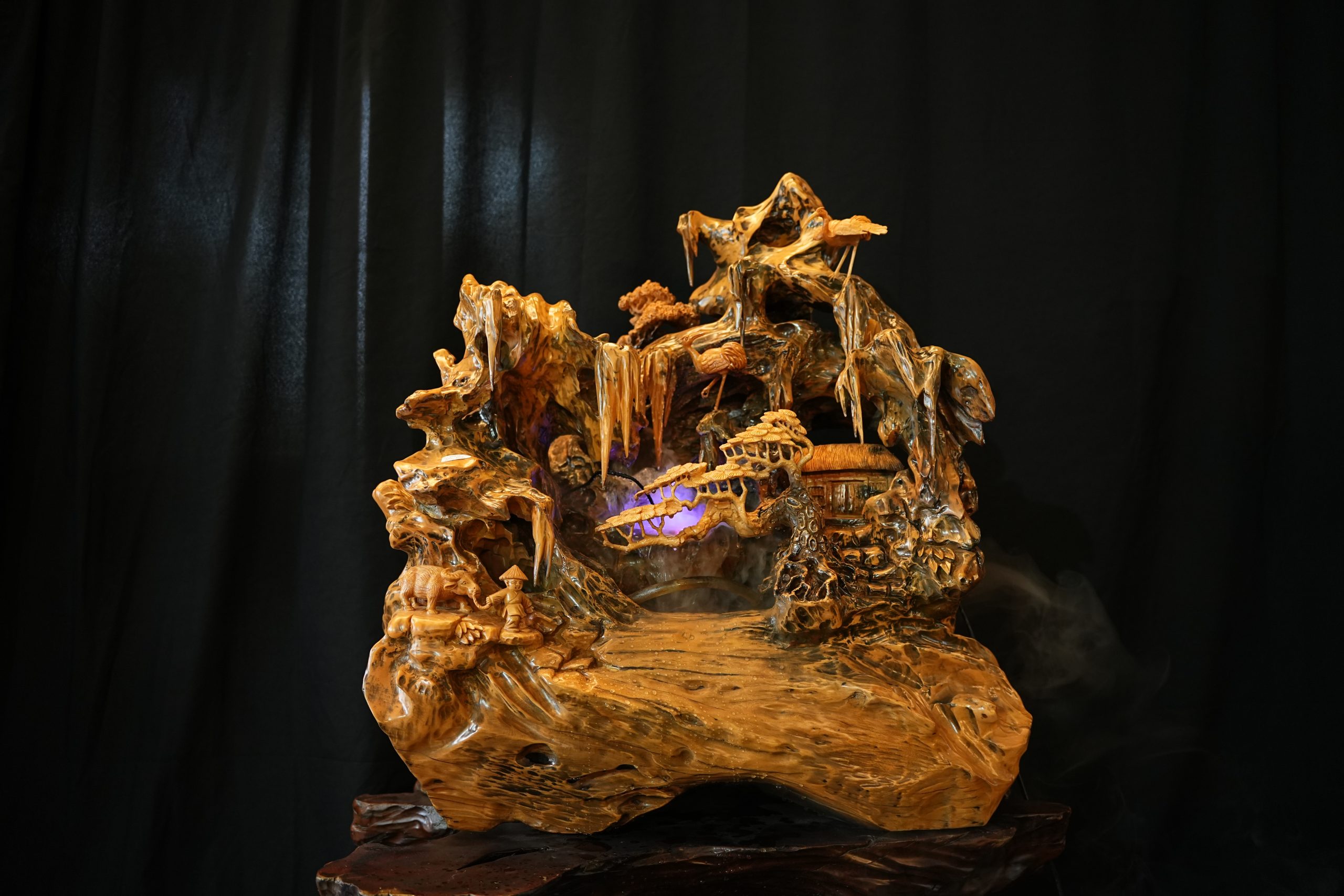 Tôn vinh giá trị gỗ lũa trai vàng trong tác phẩm Non bộ “Cội nguồn”
