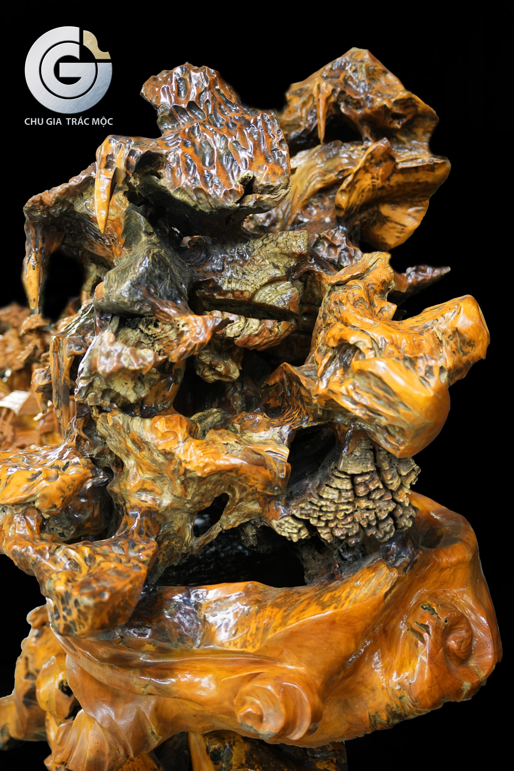 “Sơn Thanh Tụ Lạc” là một tác phẩm độc bản, thể hiện tư duy tạo hình chặt chẽ và sự tiết chế tinh tế trong điêu khắc. Nghệ nhân không phô trương kỹ thuật, mà để hình khối tự nhiên của gỗ lũa dẫn dắt cảm xúc, tạo nên một bố cục hài hòa, giàu chiều sâu và giàu tính suy tưởng.