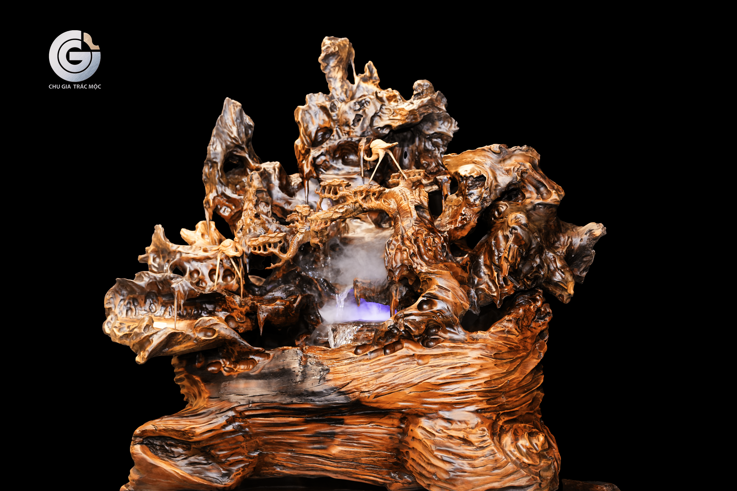 Khi ba yếu tố gỗ – nước – ánh sáng được đặt trong cùng một cấu trúc non bộ, tác phẩm không còn đơn thuần là một vật phẩm trang trí mà trở thành một mô hình tự nhiên thu nhỏ.