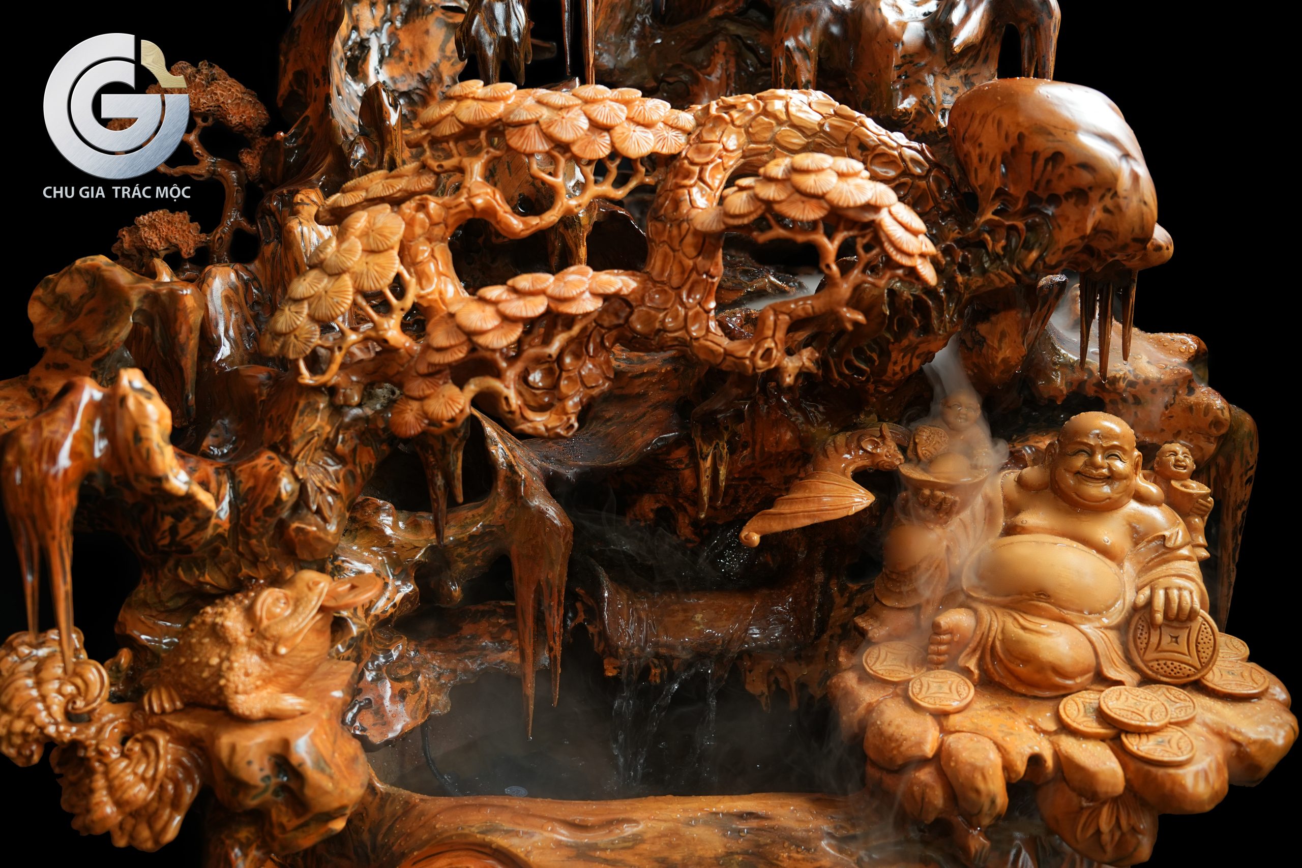 Trong nhiều tác phẩm non bộ tại Chu Gia Trác Mộc, nước không chỉ là yếu tố phụ trợ mà đóng vai trò như mạch nguồn vận hành của toàn bộ bố cục.